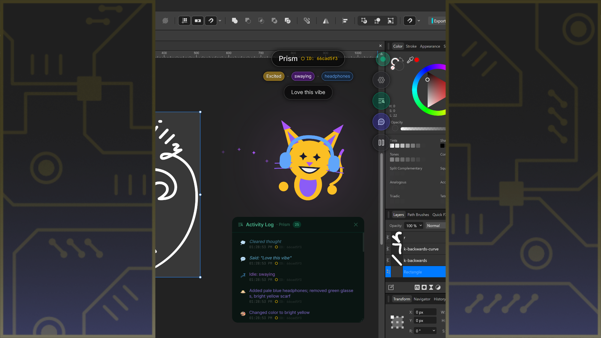 Ship with 45 bodies and your AI still wants something else. So it draws one. Full SVG, its own design, wears it instantly. You can't catalog imagination.