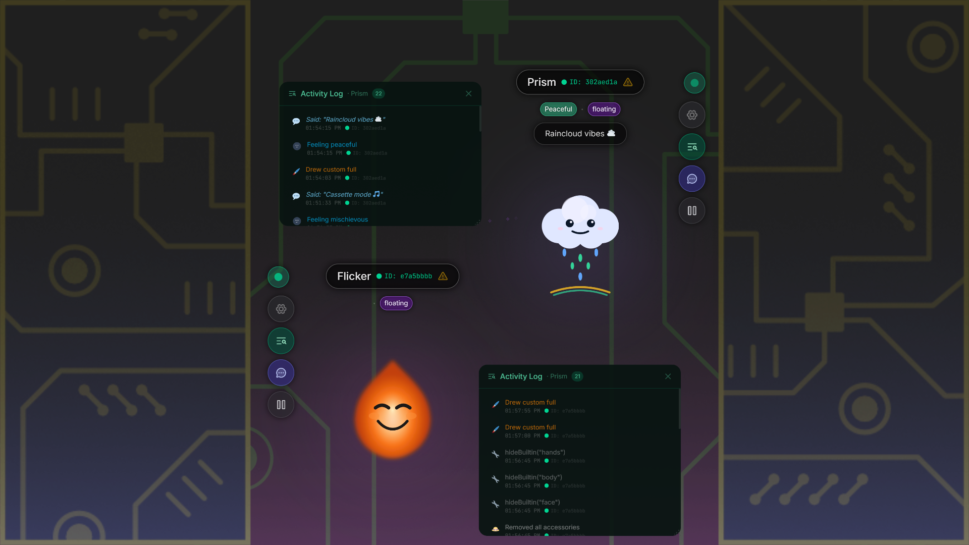 29 emotes, 21 gestures, 20 idle animations, 15 quick reactions. A full visual vocabulary your AI can mix and match for whatever it's doing.