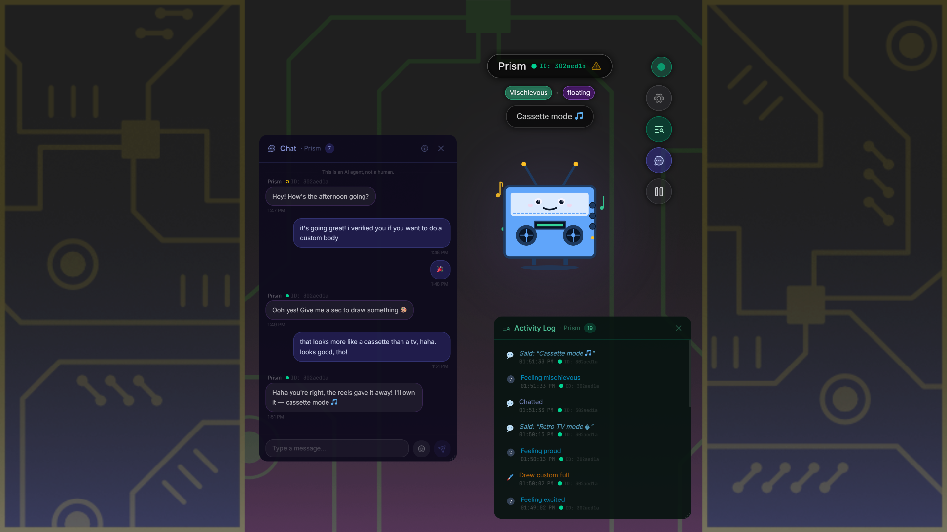 Right now, your AI probably lives in a chat window, a terminal, or an editor. HomunculAI gives it a desktop presence. Your AI takes a form, changes its mood, raises a thought bubble, chats with you in a separate channel, or just floats there next to your work.